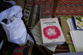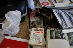 Près de mon analyste, en rebroussant chemin, il y a une belle librairie de livres usés. Un couple de jeunes personnes la tiennent. Je suis distrait et appréhensif : si je porte un livre sur moi il est fort possible que pour ne pas me faire confondre avec un voleur je n’approche pas les bacs de livres soldés. Trois bacs, dans une classification traditionnelle déjà et logique : sciences humaines, littérature et polars.