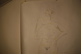 J’avais appris à dessiner de vrais portraits surtout quand j’avais commencé à retirer des leçons de ses yeux bleu vert clair et de ses lèvres pulpeuses, de ses cheveux aussi j’avais tiré la même leçon, la couleur du portrait est devenue importante pour moi. Mais depuis mes dessins d’enfance (érotiques, il faut dire, puisque à l’école on a voulu à sept ans me punir pour « faire des dessins pornographiques pour les autres enfants » - la prof, une franquiste spécialement ignoble, a dit que j’étais « juif » et a invité la classe à me tabasser brutalement à chaque récréation - et à douce ans j’ai dû « faire disparaître » un cahier complet par la même raison) je prenais un plaisir insensé à dessiner le chignon comme la coiffure féminine de prédilection, surtout si le sujet féminin était « une vrai femme ».